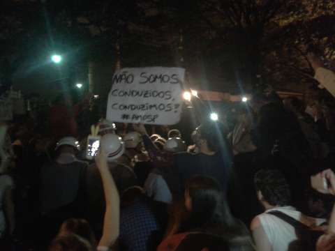 "Isso é uma demonstração de respeito da Polícia Militar à vontade política da população", diz Matheus Prei, integrante do Movimento Passe Livre e que acompanha os policiais. "Estamos vivendo uma experiência que nunca vivemos. Estamos aprendendo com essa passeata. Quando a gente não é reprimido, a gente consegue manter o controle das pessoas e não tem vandalismo, nem violência."