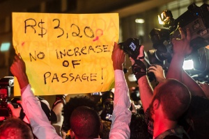 13.jun.2013 - 13.jun.2013 - Manifestante leva cartaz durante passeata contra ...
