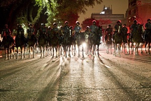 13.jun.2013 - Cavalaria da polícia militar se posiciona na rua da Consolação, ...