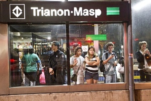 13.jun.2013 - Pessoas se refugiam dentro da estação Trianon do metrô na avenida ...