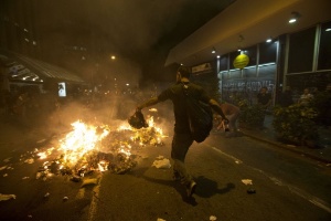 14.jun.2013 - Manifestantes ateiam fogo em lixo durante protesto contra o ...