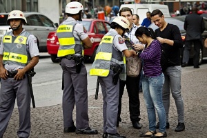 13.jun.2013 - Polícia Militar faz blitz em pedestres no viaduto do Chá, em São ...