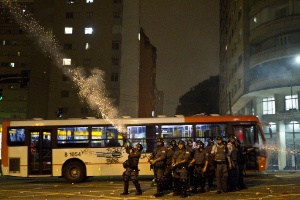 Pouco depois, o major Lidio Costa Junior, do Policiamento de Trânsito da PM, disse que o protesto, que até então transcorria pacificamente, tinha "fugido do controle". "Não nos responsabilizamos mais pelo que vai acontecer", declarou.
