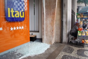 14.jun.2013 - Agências bancárias amanheceram com vidros quebrados no dia ...