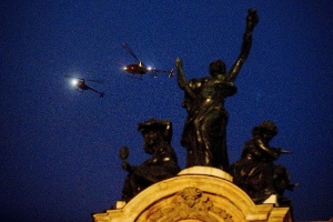 14.jun.2013 - Dois helicópteros sobrevoam o Teatro Municipal, na região central ...