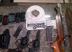 Segundo o tenente Marcelo Queiroz, no Batalhão de Choque da PM, o grupo foi detido por volta das 22h30 após denúncias anônimas. Com as informações, os policiais montaram um cerco ao redor de um bar. No local estavam sete homens, uma mulher e o adolescente ( veja vídeo ao lado ).