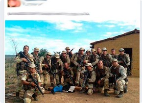 Circula em sites de redes sociais uma foto em que policiais militares da CIPE/Semiárido posam com o corpo de um suspeito de assaltar uma agência do Banco do Brasil na cidade de Mucugê. A vítima é o quinto integrante da quadrilha morto em confronto com a polícia depois do crime há seis dias. O grupo fez seis reféns, sendo que um deles,cliente do banco , foi baleado e morreu.