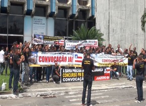 Cerca de 100 aprovados em um concurso da Polícia Militar realizado em 2012 fizeram um protesto na manhã desta segunda-feira (10), no Centro Administrativo da Bahia. Os manifestantes reclamam que ainda não foram convocados.